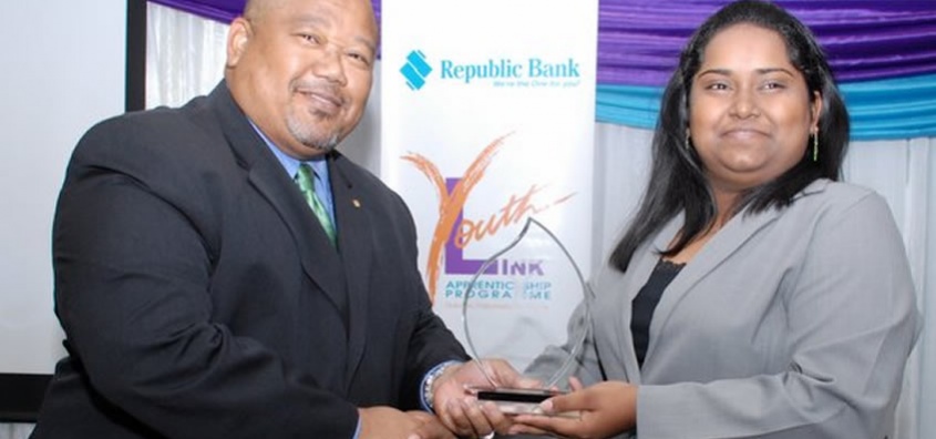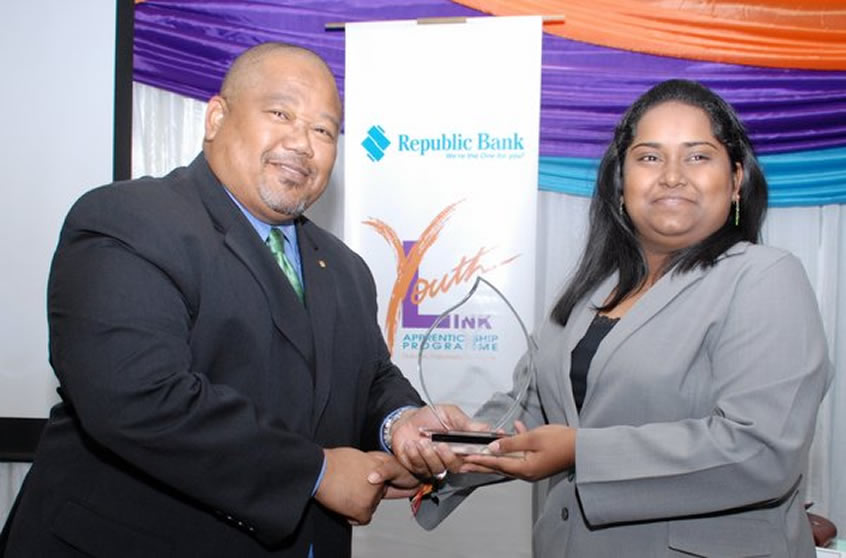 These were the words of advice shared by Derwin Howell, Republic Bank's Executive Director, as he delivered remarks at the graduation ceremony of the Republic Bank Youth Link Apprenticeship Programme. The ceremony took place at Republic House, Park Street, on May 8, 2013. Thirty-three young adults graduated from the programme.