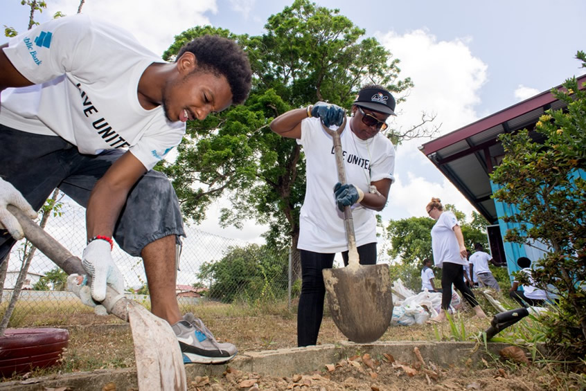 The team who worked at the Society, braved the scorching sun and with rakes, shovels and forks in hand, replanted the sensory garden at Autism Place. At the end of the day, the place was transformed leaving behind loads of positive energy. Other branches which took part in the activities were Corporate Business Centre, (East) who refurbished the Grand Riviere A.C School’s library and its premises, while the staff over in Tobago, refurbished the libraries at Moriah Government Primary School and Scarborough S.D.A Primary School, under their theme “ Reading is our Superpower”.