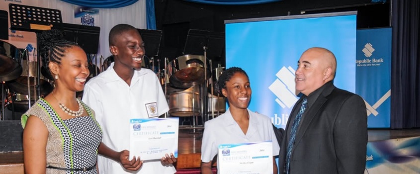 Port-of-Spain, Trinidad, August 4, 2014: The sweet sounds of the national instrument of Trinidad and Tobago, echoed through the auditorium of Bishop’s East College, Trincity on July 30, as 117 students delivered spectacular renditions on the steel pan, as they graduated from the 19th annual Republic Bank RightStart Pan Minors Music Literacy Programme 2014.